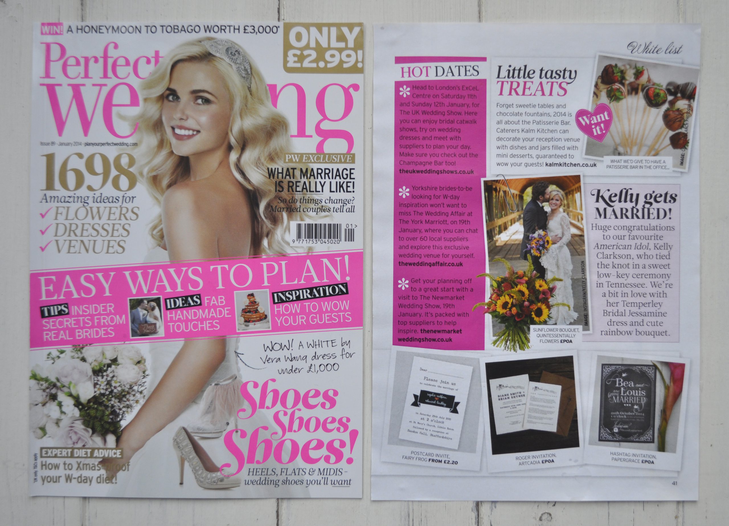 What a nice start to the New Year; our Chalkboard invitation from our Hashtag Chalkboard Wedding Stationery range has been named one of the 3 best black and white invites in Perfect Wedding Magazine January 2014!
