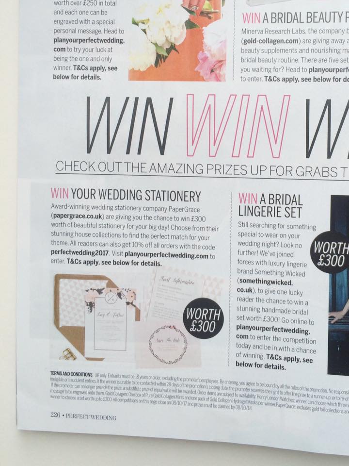 We’ve teamed up with the lovely lot at Perfect Wedding Magazine to give you the opportunity to WIN £300 worth of our wedding stationery. Visit planyourperfectwedding.com to enter… Hurry though the competition ends on the 8th October!