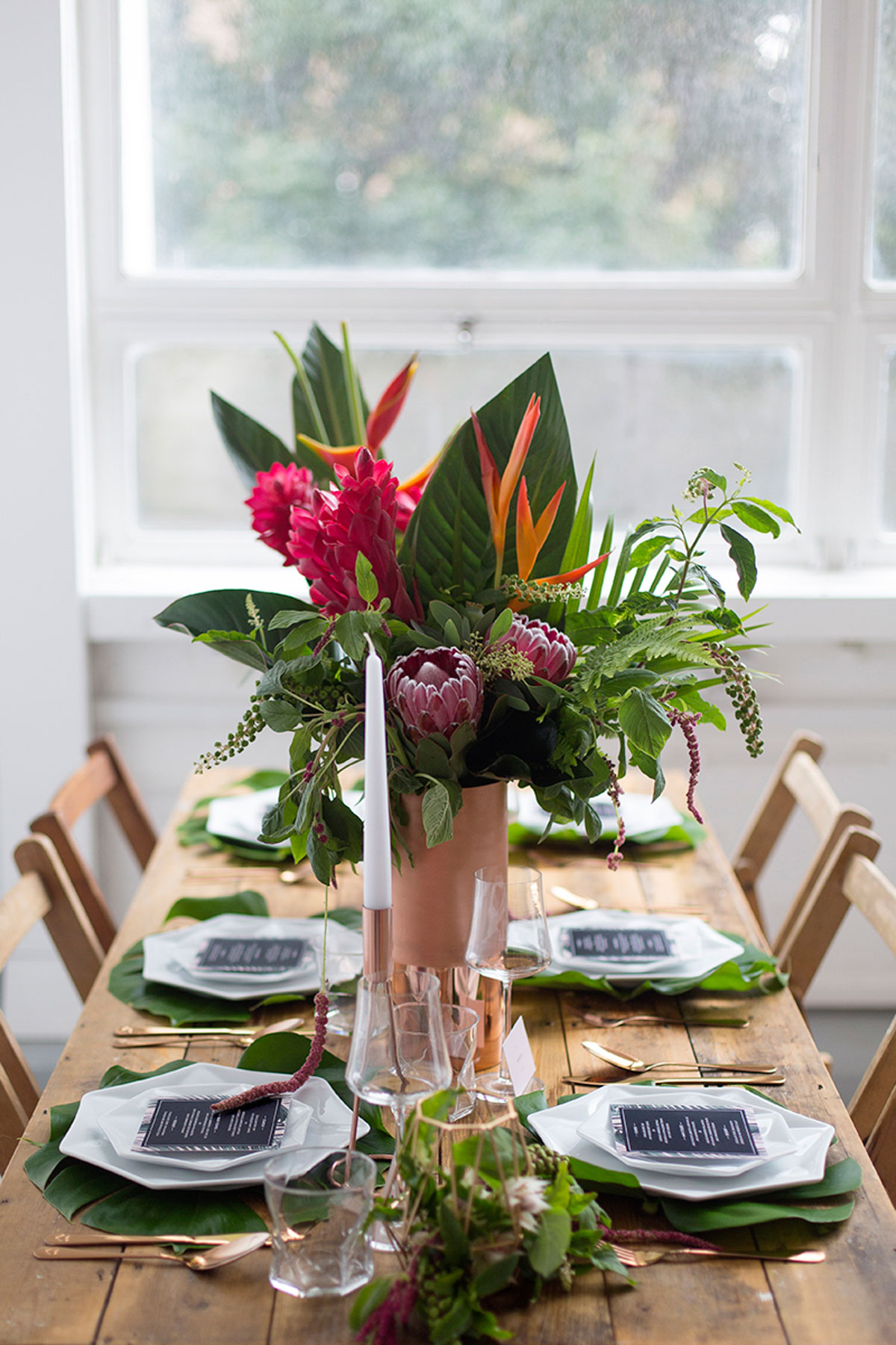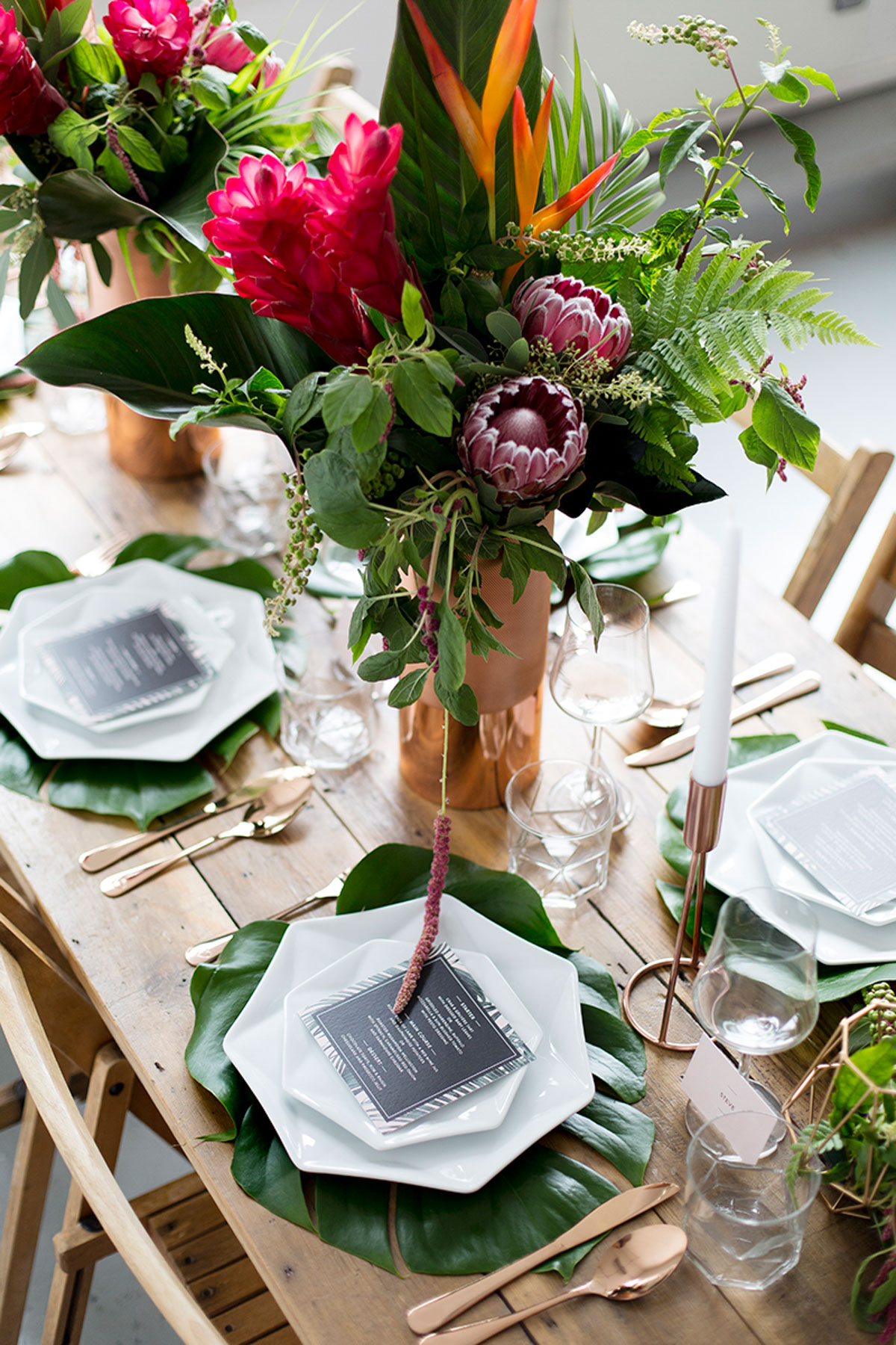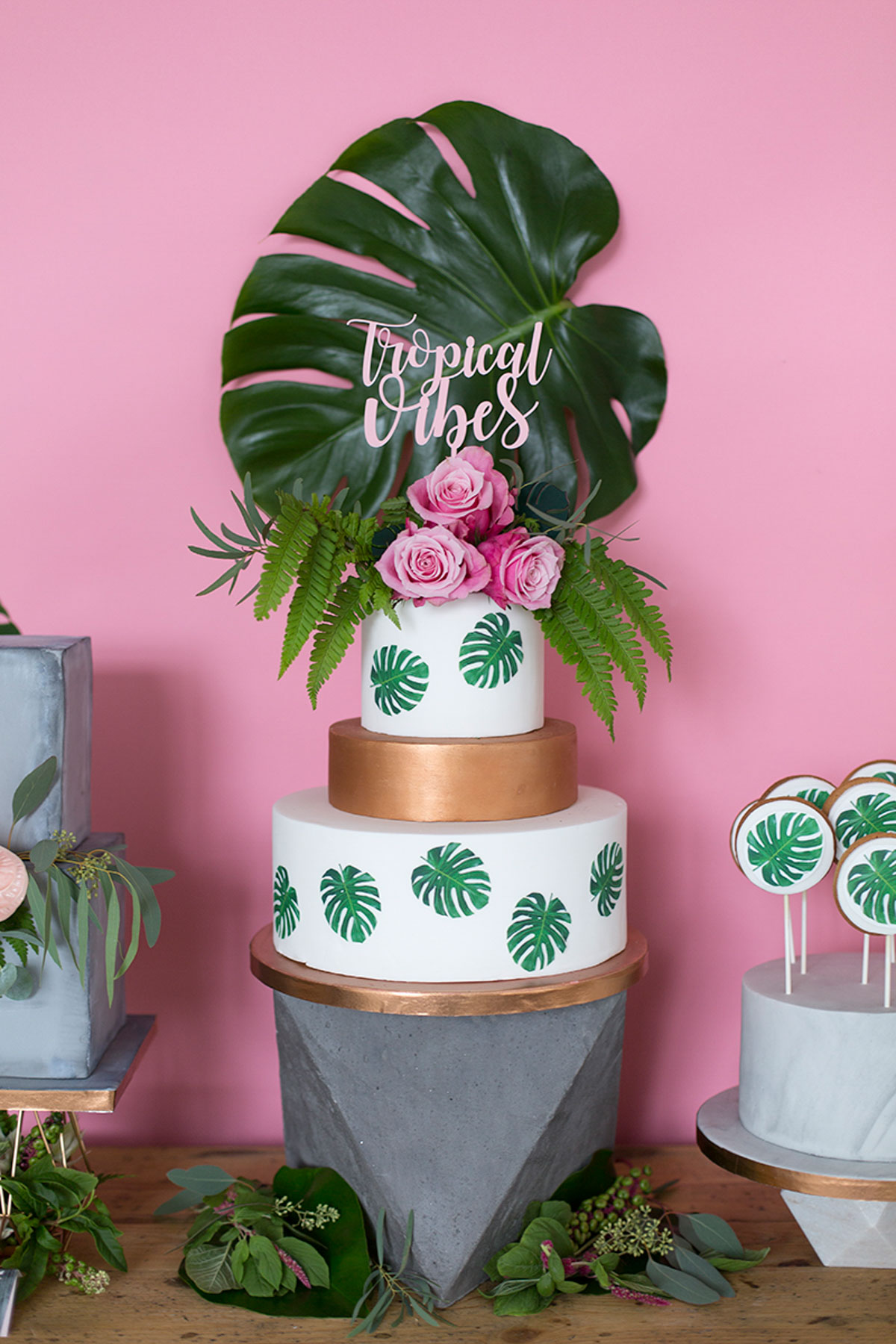 Katie from Malarkey Cakes was the brains behind the shoot, and created a bunch of truly awesome and original cakes. We were so cuffed when she asked us to be apart of the team. We created some tropical style wedding stationery, with the invitation having rose gold foil detailing.