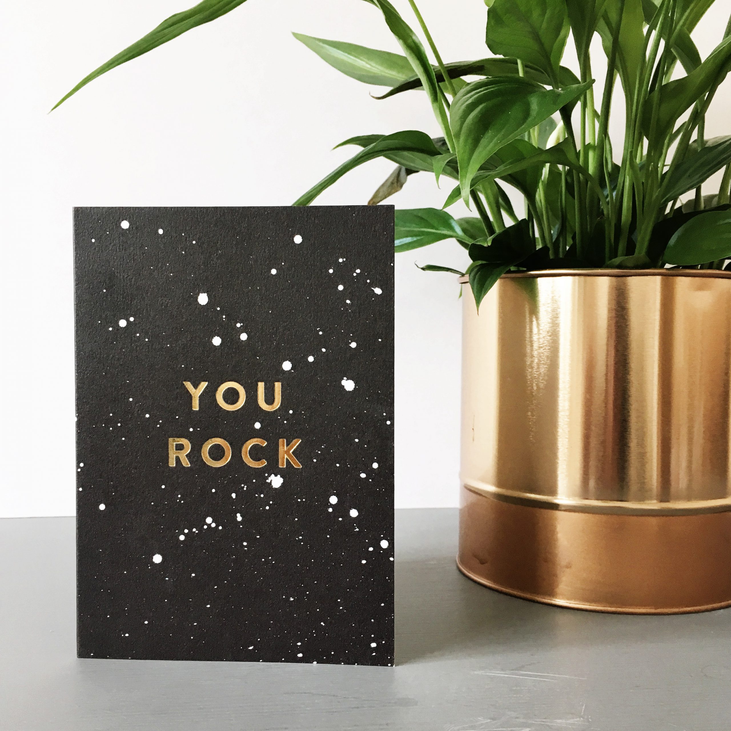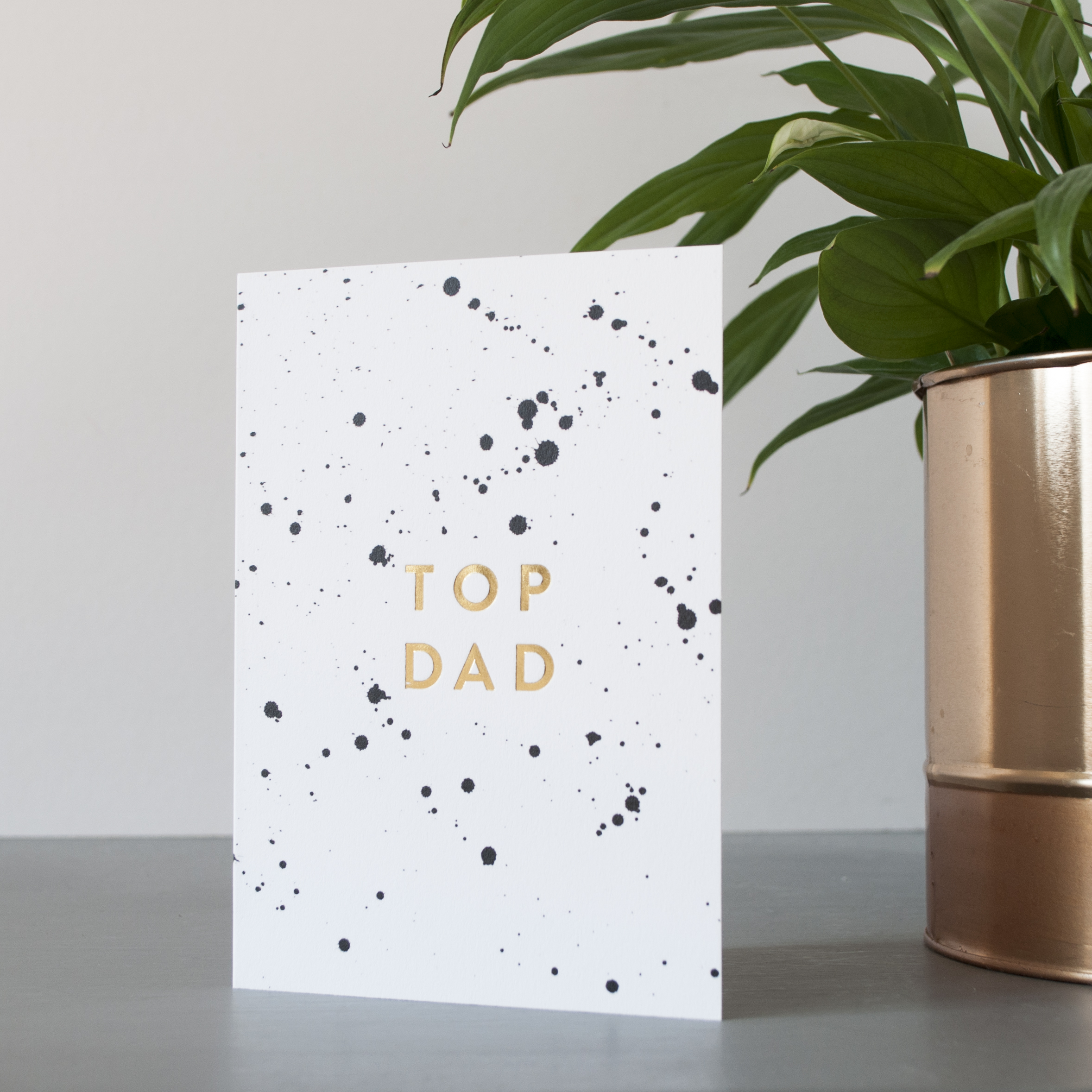 We have a choice of two luxury hot foil cards – “Top Dad” and “You Rock” both set in gold foil on our hand painted splatter background.