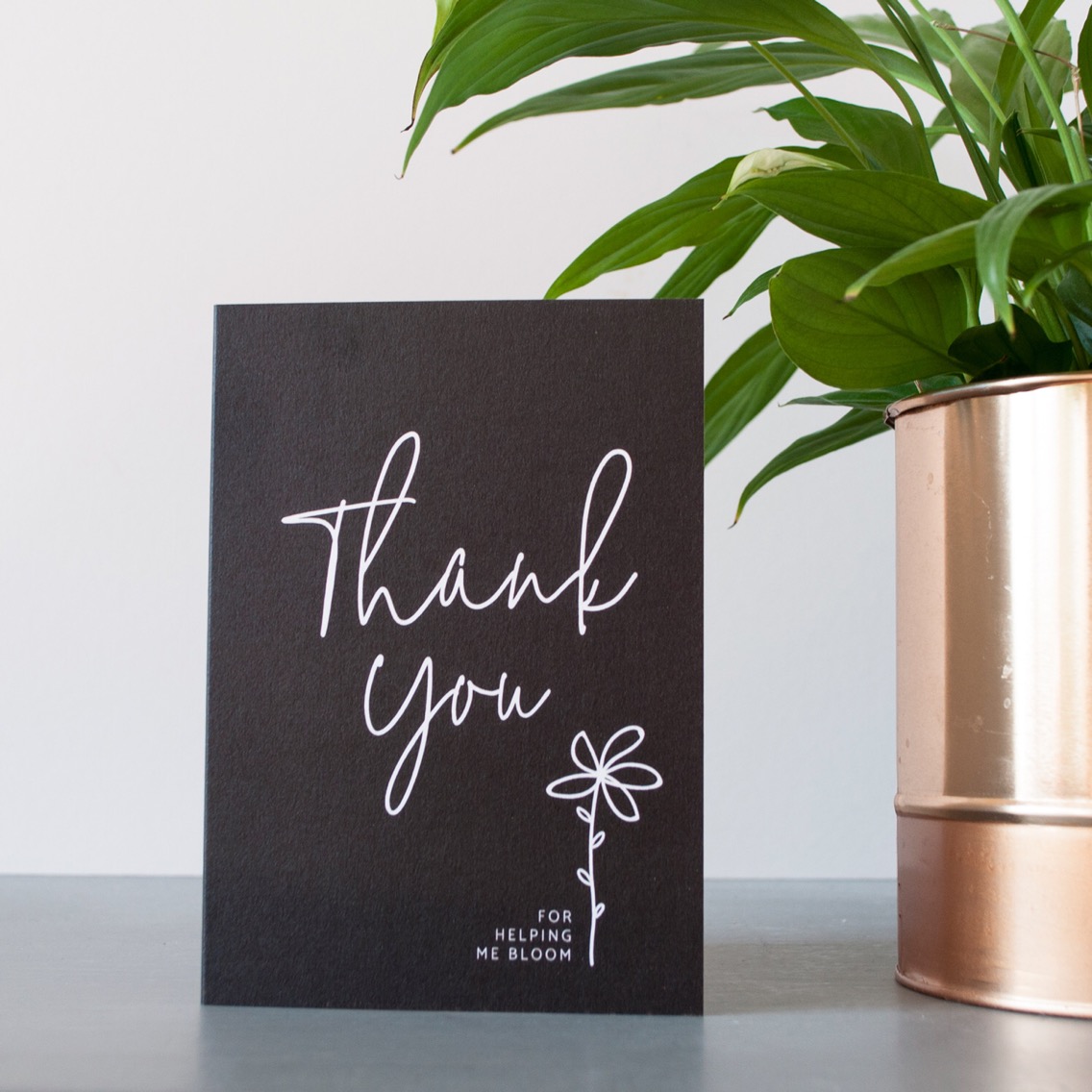 We have two designs available ‘Modern Type’ which is a bright and fun card and the other ‘helping me bloom’ which is perfect for those teachers who you have watched nurture and encourage your child throughout the year.