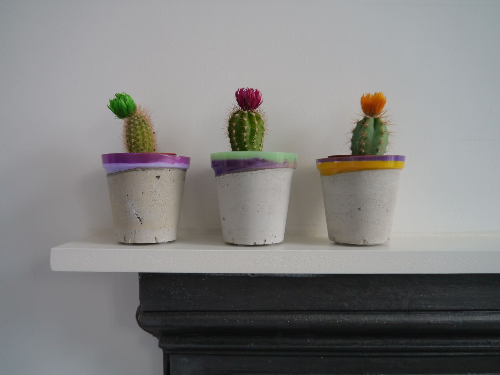 After the wedding we kept getting lovely comments about the pots. I then had a moment of creative madness once our second child was born to revisit materials and ideas I’d had whilst studying for my degree and tested combing resin with the concrete for pots which proved a success and there Concrete Candy arrived.